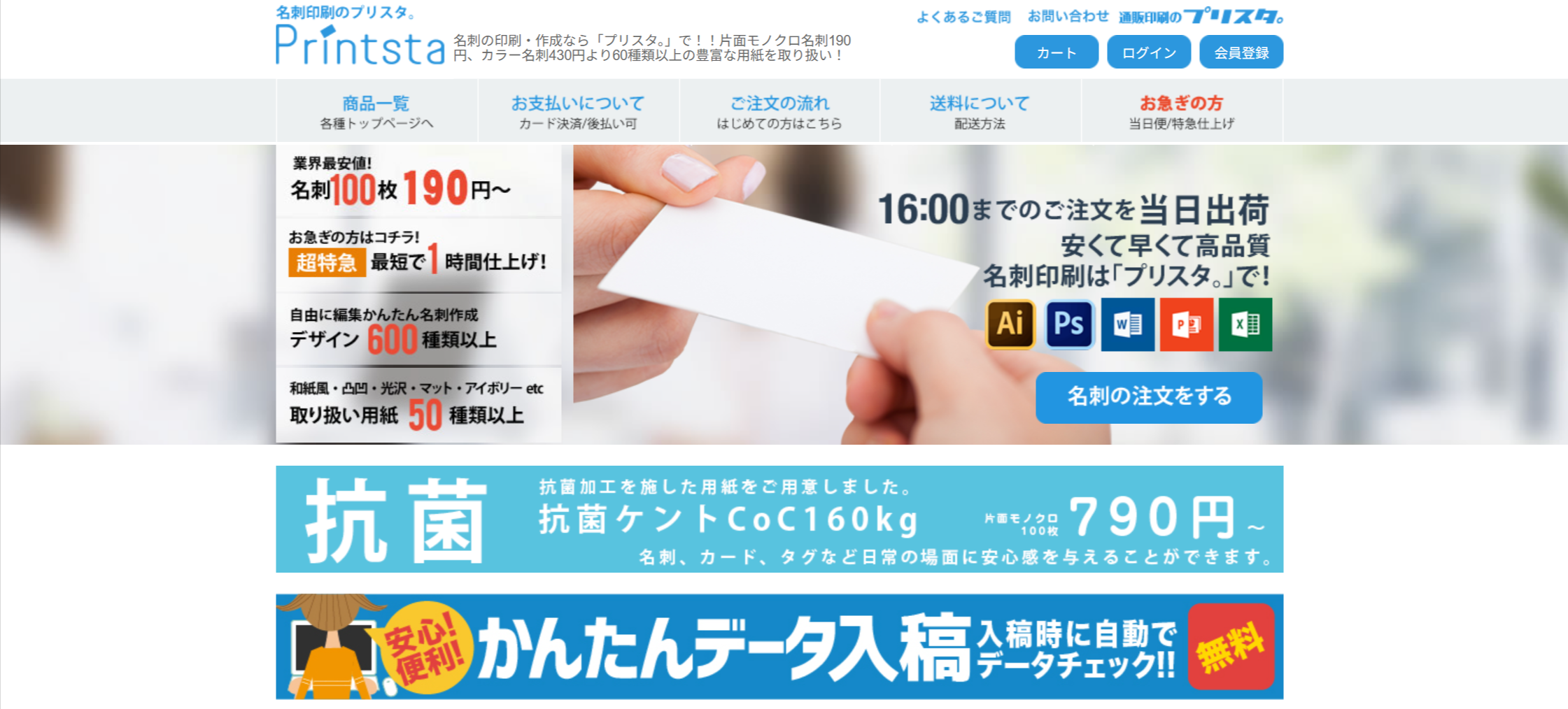今回、ご紹介するのは、名刺作成に主に行っているサイトになります。